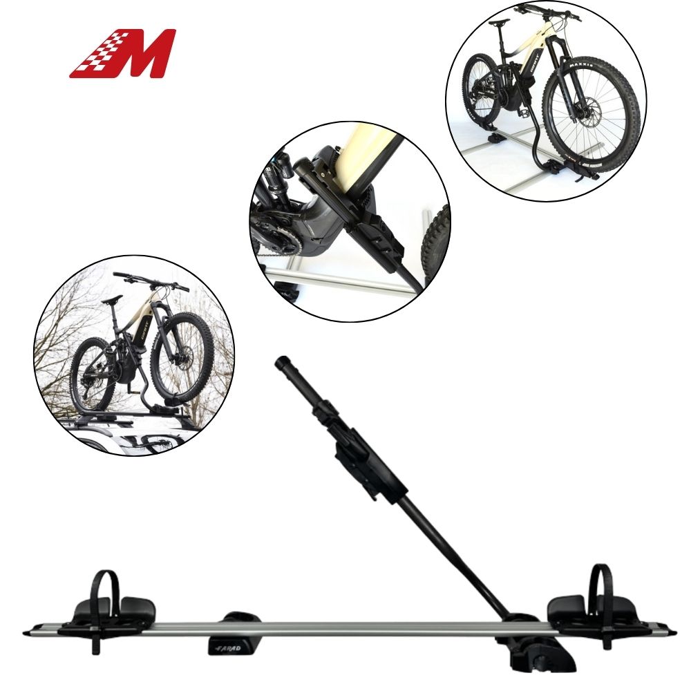– O porta-bicicletas de teto Farad Pesio é um porta-bicicletas pré-montado, pronto a usar e adaptável a qualquer tipo de barra.